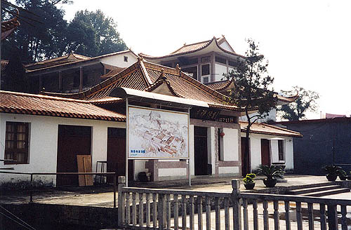 A monastery high up in the mountains.